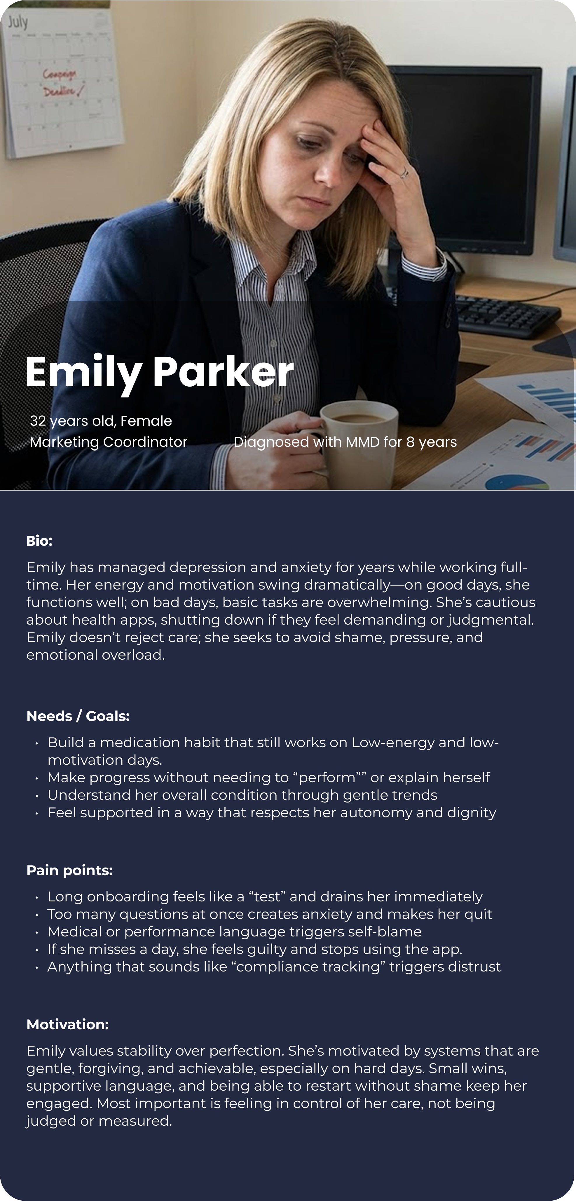 ---Soft colors and gentle shapes, avoid clinical design